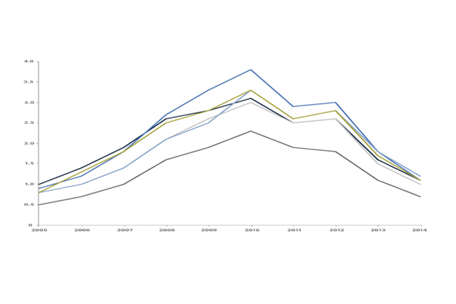 Clusters were most strongly differentiated by age of housing, household income, population growth, and economic hardship indicators such as unemployment and foreclosure. The algorithm identified two low- to moderate-income primarily suburban clusters differentiated by housing stock, an aging population, and certain economic indicators. The algorithm also identified two high-wealth clusters: one typified by middle-aged homeowners in communities with moderate sales activities, and a second cluster of young, highly educated, urban professionals. Finally, two economically-distressed clusters were identified, differentiated by the varying degrees of unemployment, subsidized housing, and investment indicators.
